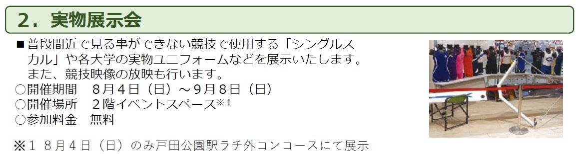 ビーンズ戸田公園 「第51回全日本大学ローイング選手権」応援企画開催!