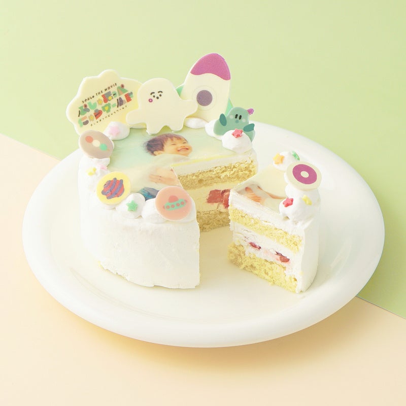 Cake.jpは「シナぷしゅ」と共に「お子さまもご家族も一緒に美味しく召し上がってほしい」という想いから、お子さまも安心して食べられるように原材料にもこだわったケーキをお届けしています。今回、映画の公開を記念して『シナぷしゅ THE MOVIE ぷしゅほっぺにゅうワールド』限定デザインの写真ケーキが誕生しました。