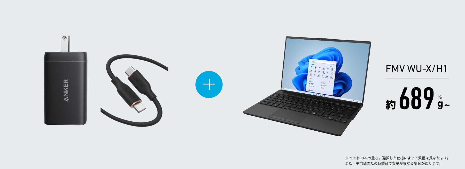 【アンカー・ジャパン】世界最軽量モバイルノートPC、FMV「UHシリーズ」に、Ankerの充電器&ケーブルの同梱がスタート!PC使用が一層快適に