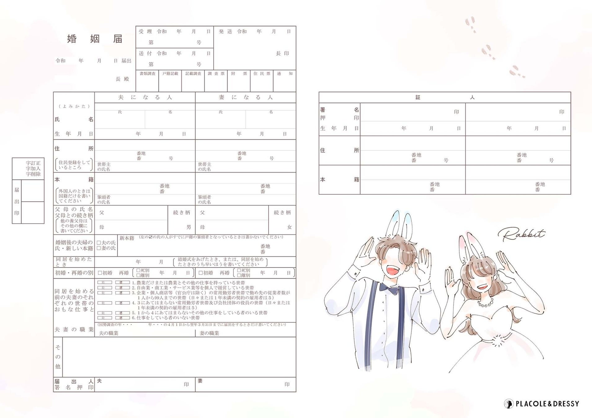 【無料DL】PLACOLE&DRESSYオリジナル 『プラコレ婚姻届』に新デザインが登場!新年兎年モチーフや地域限定オリジナルデザイン大分県・宮崎県ver.が新登場!