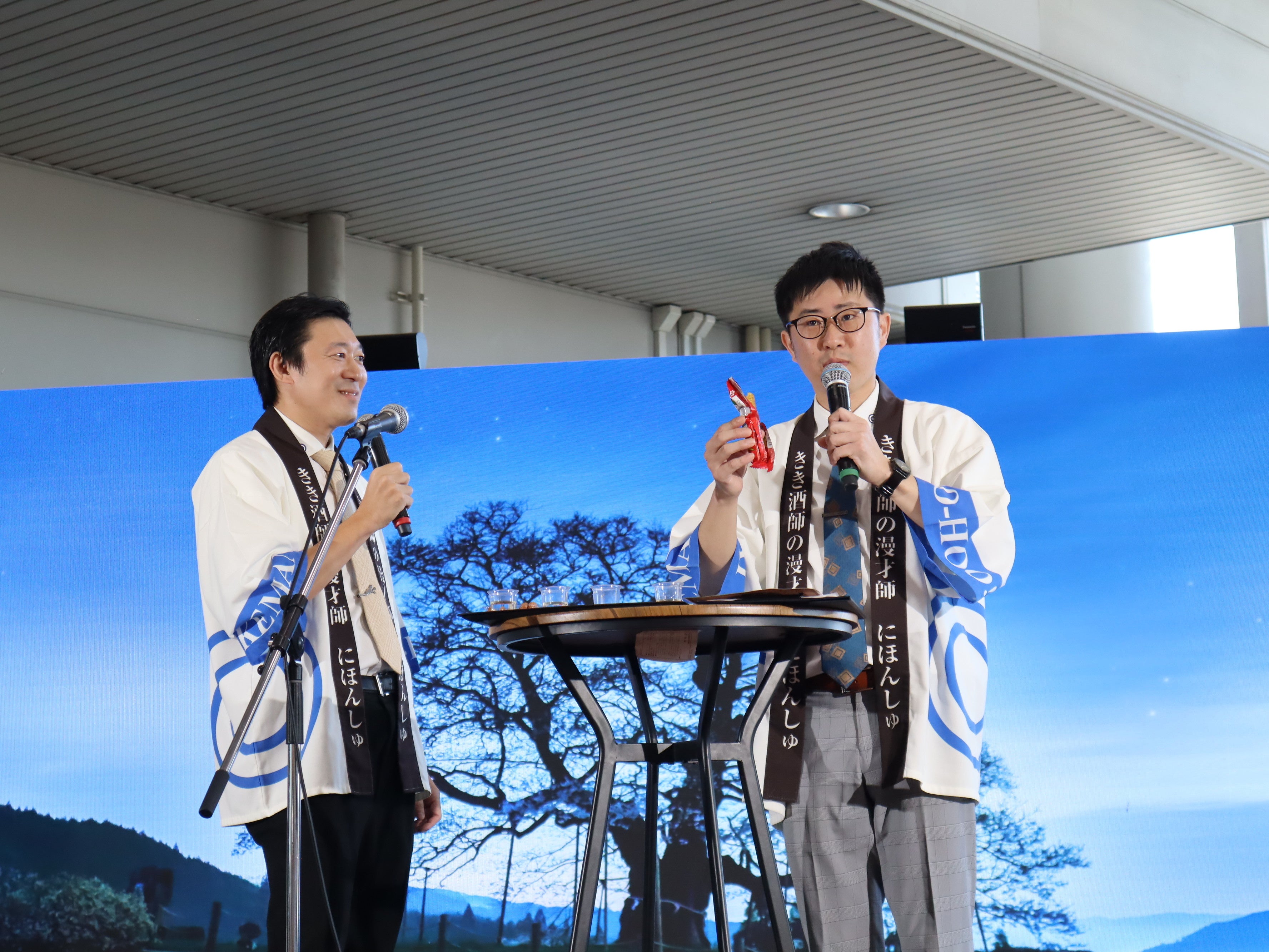 ステージではアカペラヴォーカルグループの「clearance(クリアランス)」のライブのほか、きき酒師の漫才師・にほんしゅのお二人によるペアリング解説や漫才が行われました。