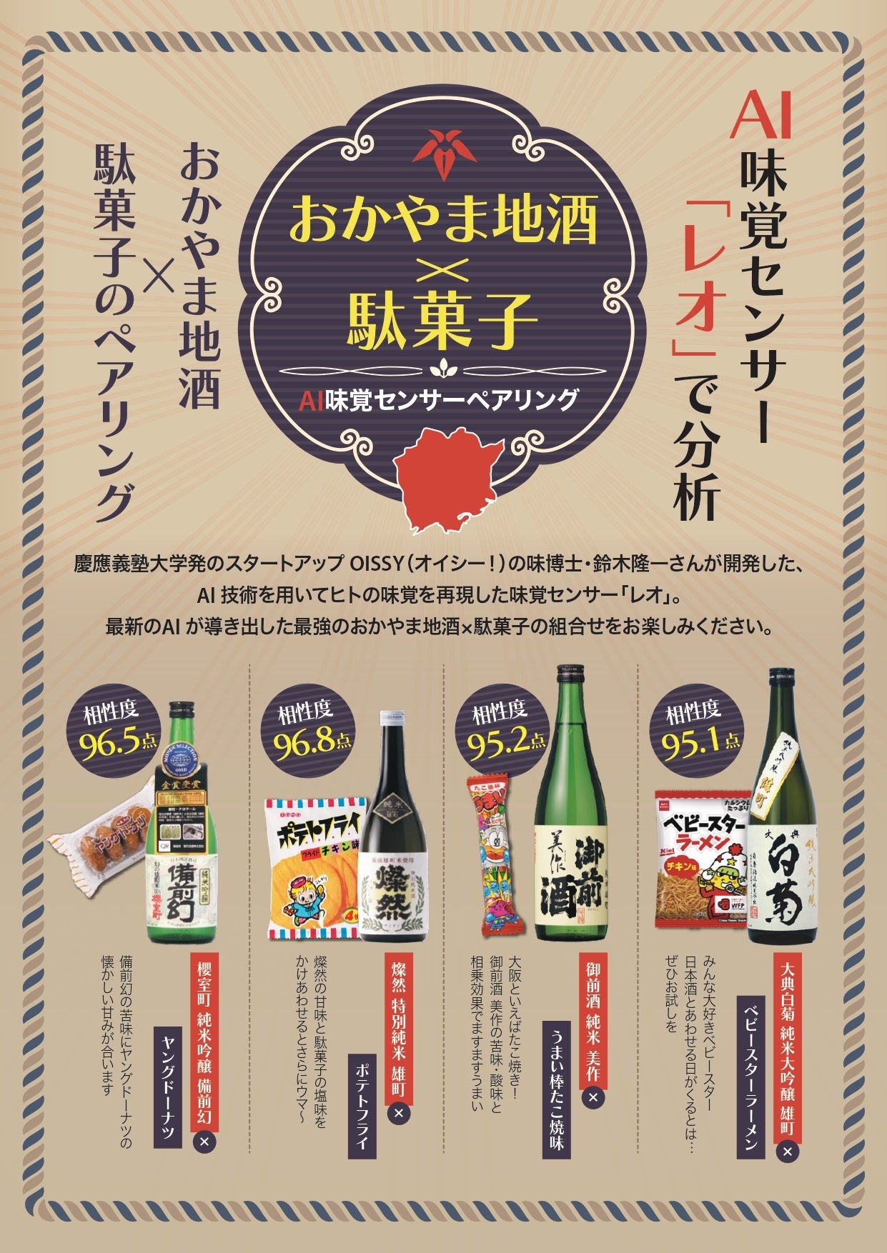※岡山県が誇る地酒の魅力を味わい尽くす「おかやま地酒×駄菓子 AI味覚センサーペアリング」