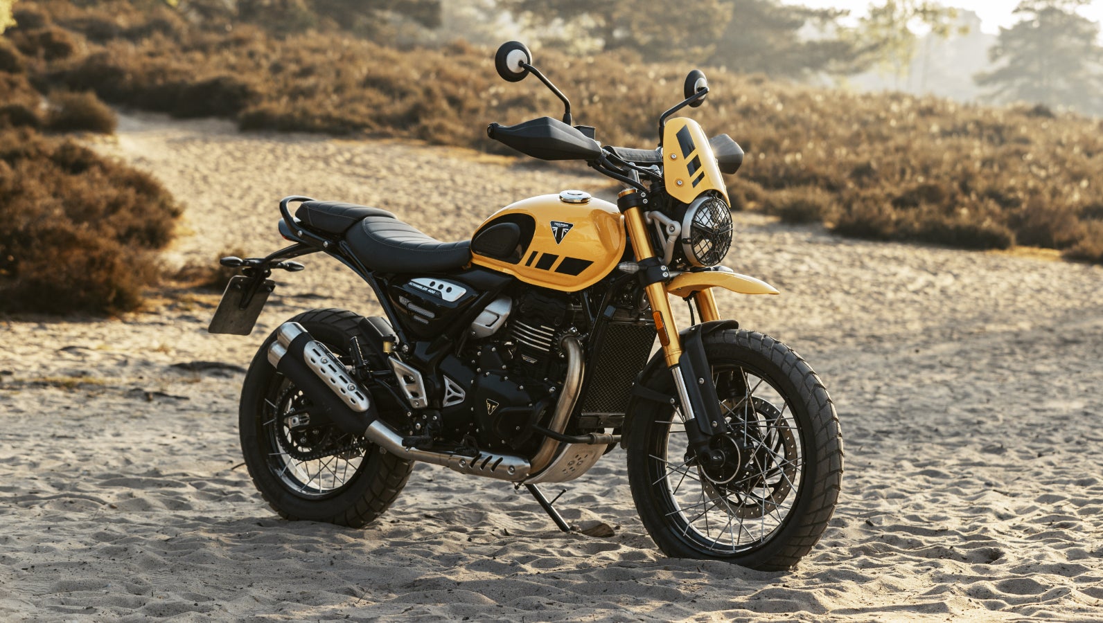 トライアンフ スクランブラーのDNAを受け継ぐSCRAMBLER 400 XC。モダンカスタムのスタイリング、オフロードを意識した佇まい、上質なフィニッシュ。時代を超越したスタイルと現代的な走行性能を兼ね備えたオールラウンダーです。
