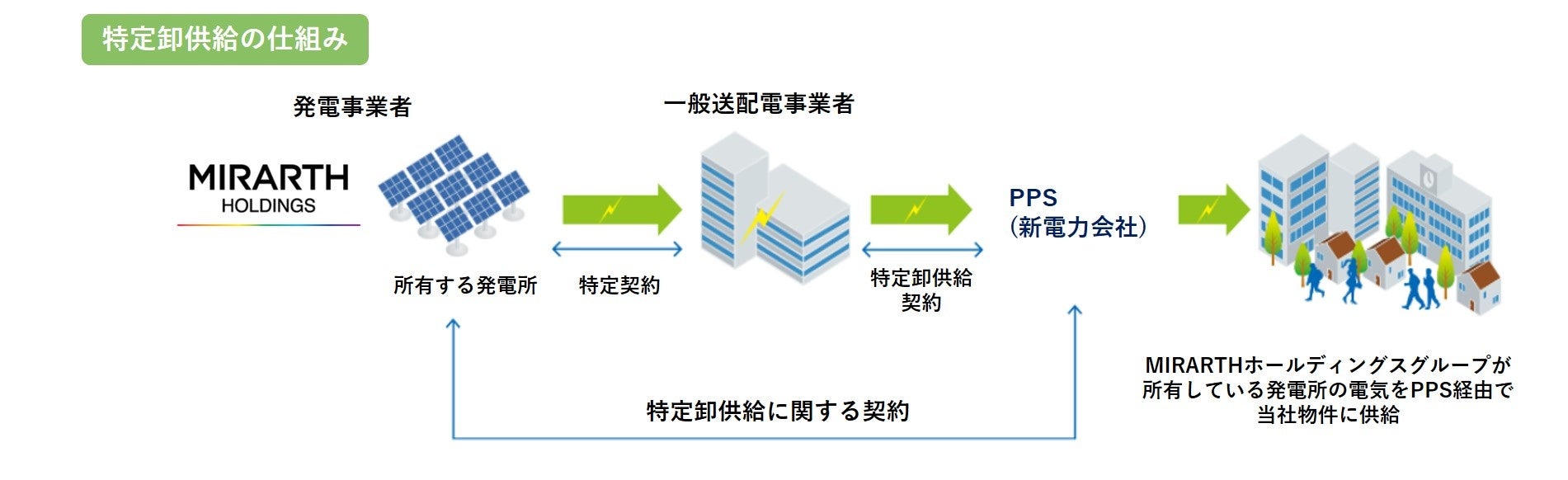 販売および賃貸物件への高圧一括受電・特定卸供給等により、物件購入者・テナント入居者の皆さまへ環境に配慮した建物を積極的に提供し、長期運用期間中のCO₂削減に貢献します。