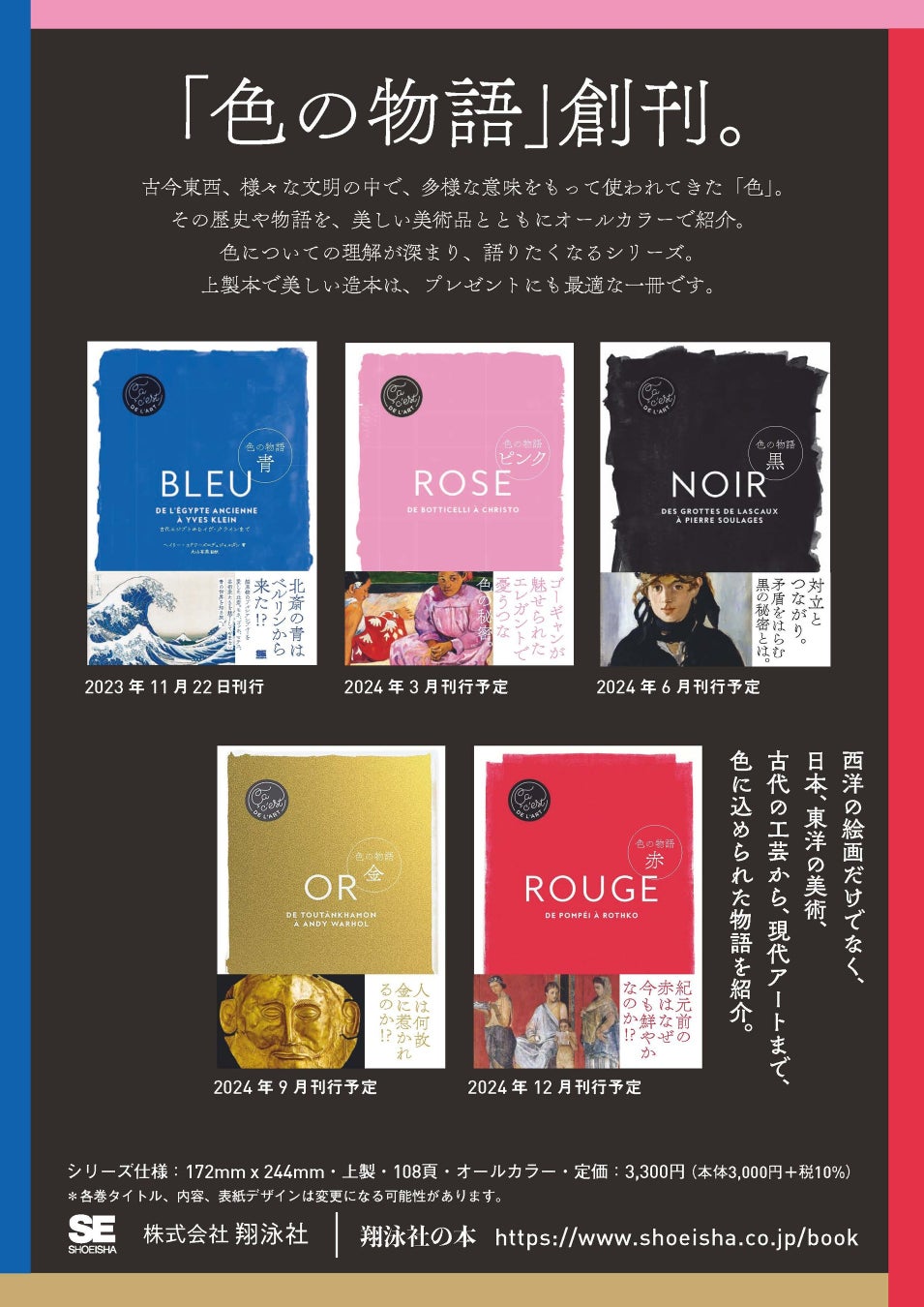 その色はどこから来て、どこへ向かうのか。古今東西文明のなかで、さまざまな意図で使われてきた「色」の歴史とストーリー、影響力を、名だたるアート作品の美しいビジュアルでたどります。地図や図解、年表等のグラフィックも豊富に盛り込み、多彩な角度からの解説が特徴です。好評既刊「青」、「ピンク」、本書「黒」に続き、「赤」「ゴールド」の刊行を予定しています。