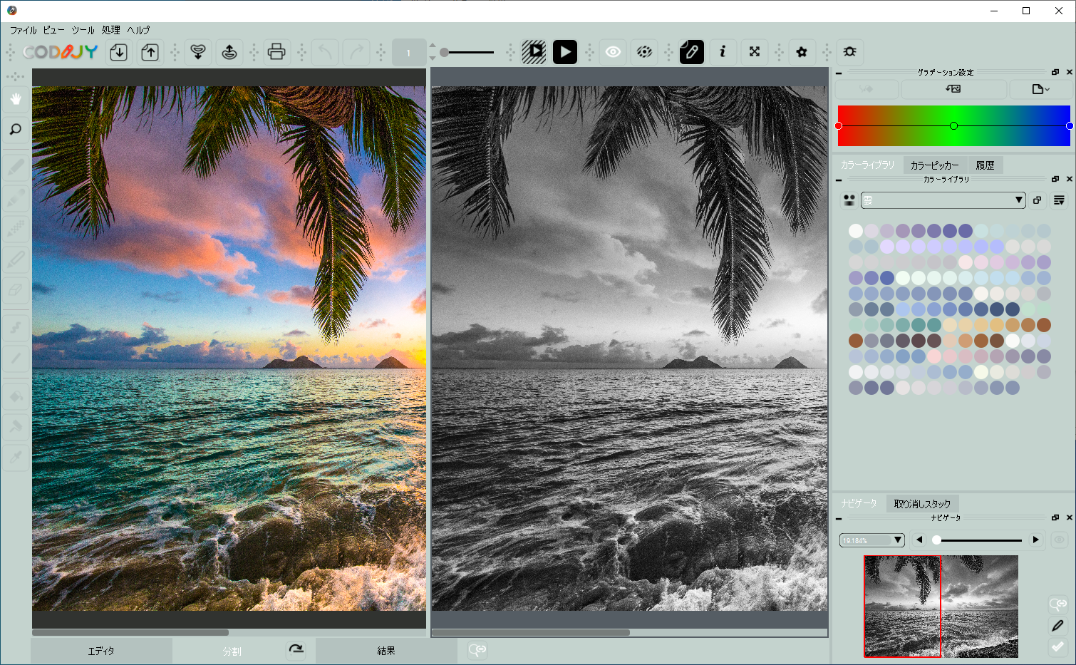 複数の色を選ぶ必要のあるグラデーションも、「CODIJY Colorizer Pro」なら独自のアルゴリズムが自然に着色。時間と労力を節約できます。グラデーションは、元から収録されたテンプレートを使うことも、自分でカスタマイズもできます。