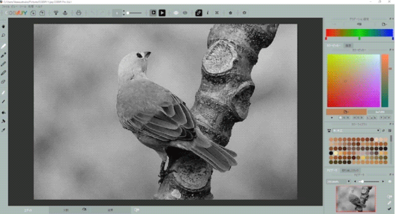 自動で着色するだけでなく、ピクセル単位での編集もできます。1ピクセルごとに着色することで、よりイメージに近いカラー写真を作成できます。