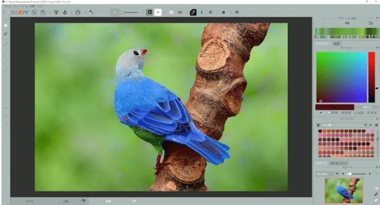 本製品は、写真の色を自在に変更できるソフトです。独自の色付けアルゴリズムでモノクロ写真をカラーにしたり、一部の色を入れ替えたり、塗り絵のような感覚で自然な仕上がりが得られます。上位版の「CODIJY Colorizer Pro 4」では、別の写真から使いたい色を抽出する機能を搭載し、編集しながらリアルタイムでプレビュー確認することもできます。