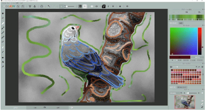 本製品と同様にモノクロ写真に色付けができるソフト「Akvis Coloriage」のストロークを、CODIJYに取り込んで使用できるようになりました。