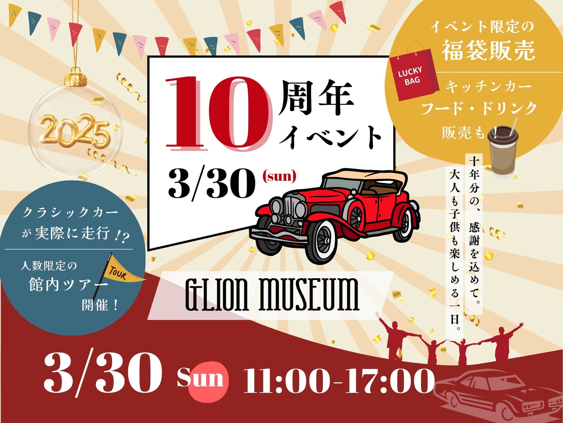 GLION GROUP(ジーライオングループ 所在地:兵庫県神戸市)は、同グループが運営する大阪築港・赤レンガ倉庫のGLION MUSEUM(ジーライオンミュージアム 所在地:大阪府大阪市)にて2025年3月30日(日)に10周年イベントを開催致します。