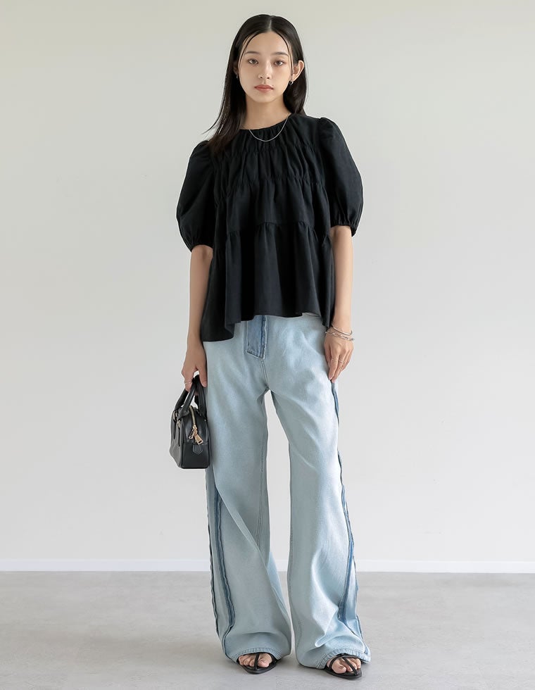 どこから見てもすっきり、涼し気ティアードブラウス。