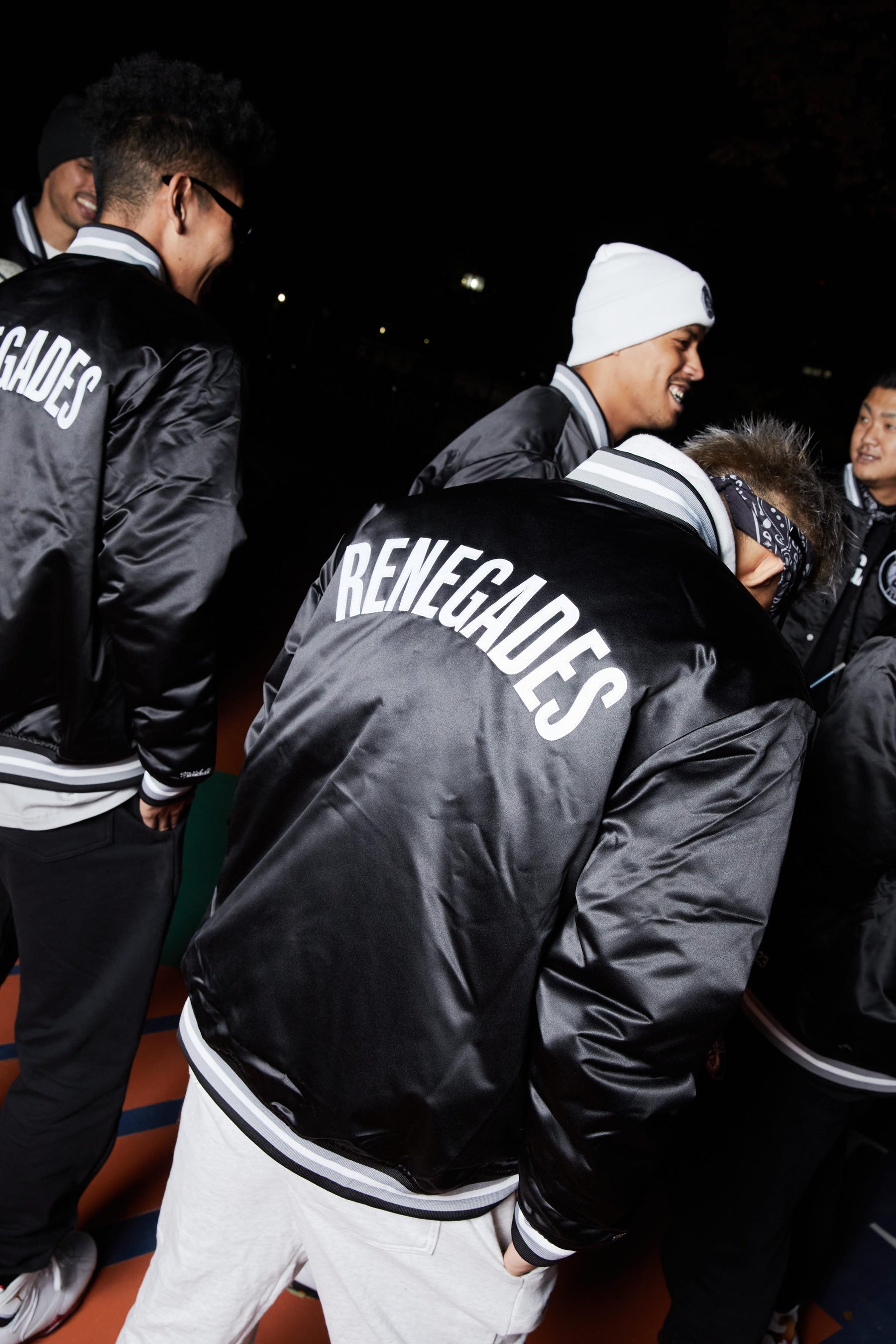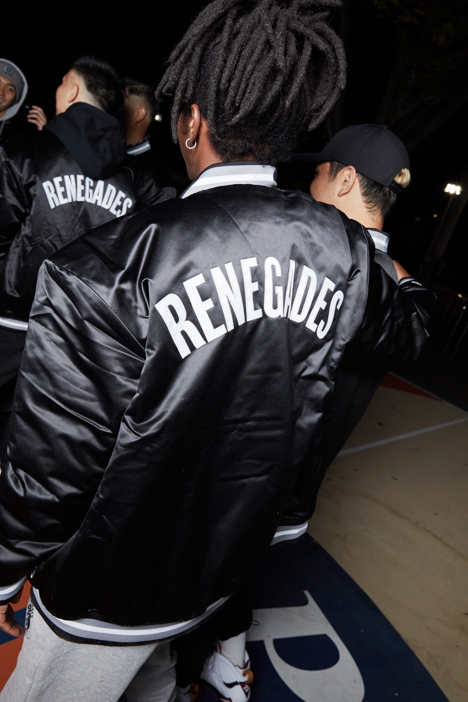 これまでにメッシュ生地のセットアップやTシャツ、スウェットセットアップやヘッドウェアを展開してきたRENEGADES。第三弾となる今回は、数多くの公式トレーニングウェアのライセンスウェアを取り扱う「Mitchell & Ness」とのコラボレーションにより、丈夫で厚みのあるヘビーウェイト仕様のサテンジャケットを発売。