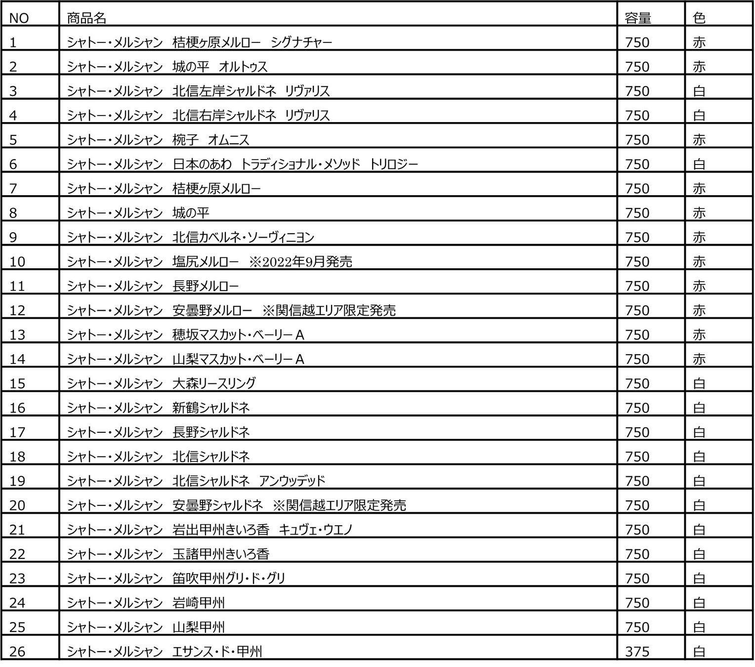5.対象商品 上記期間にメルシャンより出荷されたメルシャンの日本ワイン