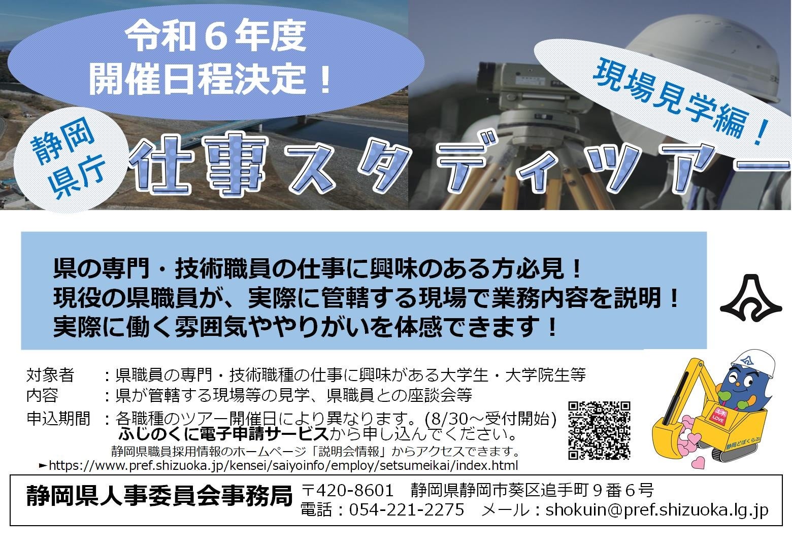 <静岡県庁>仕事スタディツアー[専門・技術職員と行く現場見学] 令和6年度開催決定!