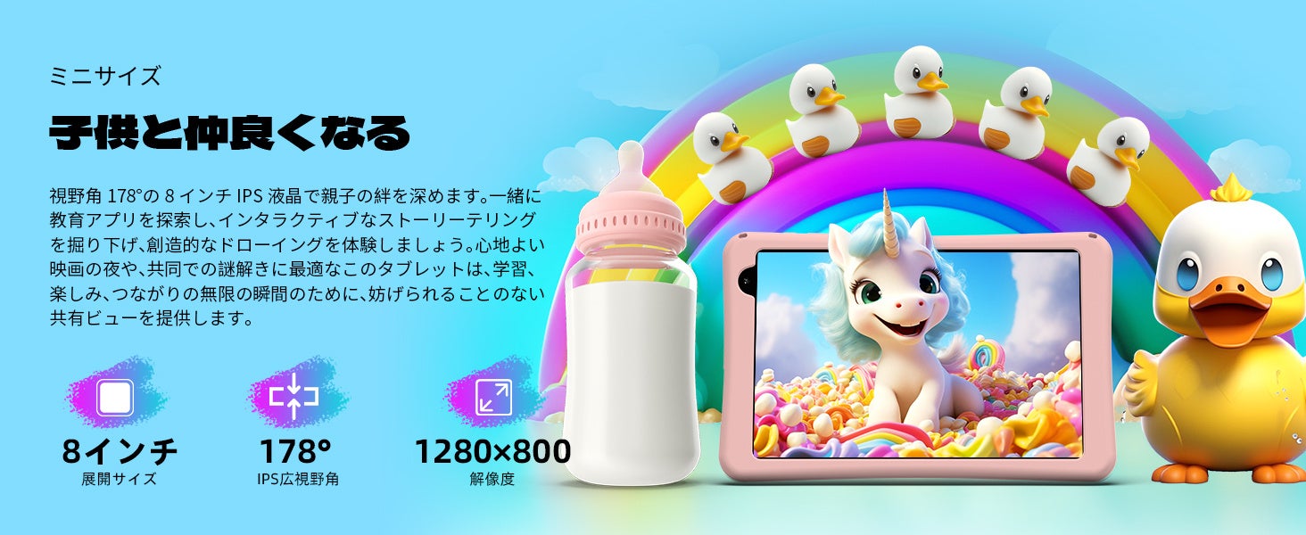 Teclast「P85Tkids」は、TKidsスペース専用のテーマをカスタマイズするオプションがあります。選択した壁紙とアイコンの色は、ビジュアルに適しており、趣味に適しています。 視野角178°の8インチIPS液晶で親子の絆を深めます。一緒に教育アプリを探索し、インタラクティブなストーリーテリングを掘り下げ、創造的なドローイングを体験することができます。