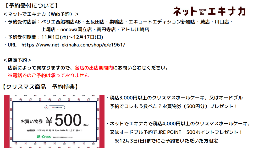 <ネットでエキナカ予約受付開始:2023年11月1日(水)~>