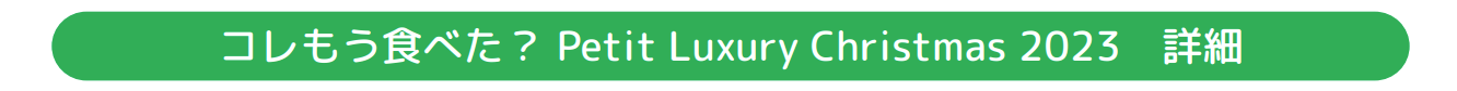 15店舗を展開する「コレもう食べた?」店舗にて、『コレもう食べた?Petit Luxury Christmas 2023』と題し