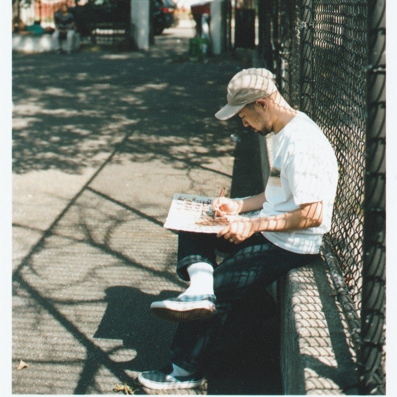 街を遊び場とするスケートボードの柔軟な視点に強く影響を受け、日常の風景や身近にあるオブジェクトをモチーフにペインティング、ドローイング、コラージュなどさまざまな手法を用いて独特な視点に転換する。2023年に初作品集「Days」を美術出版社から刊行。