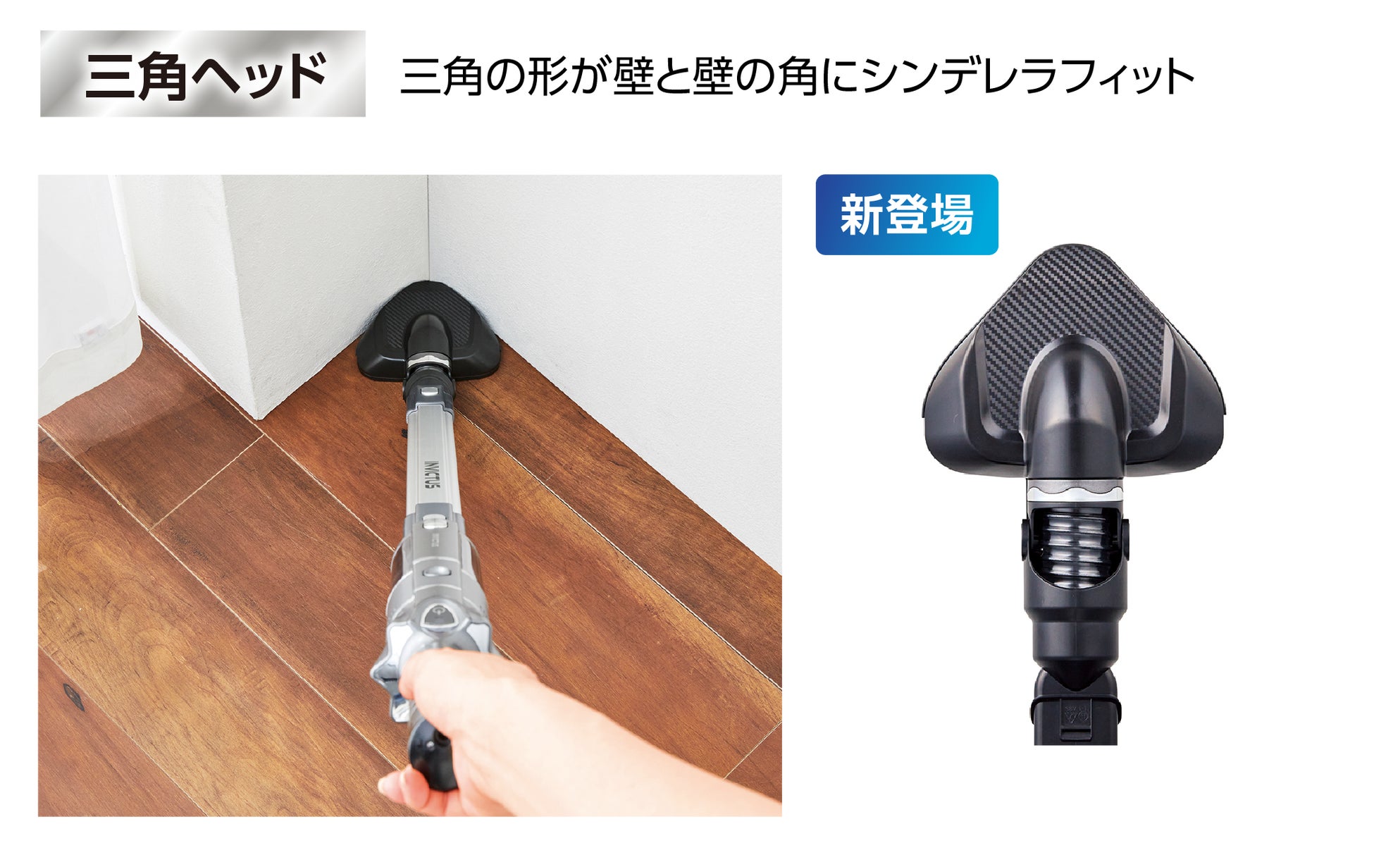 掃除残りが気になる角にシンデレラフィットし、お家のコーナー掃除に大活躍する<三角ヘッド>※