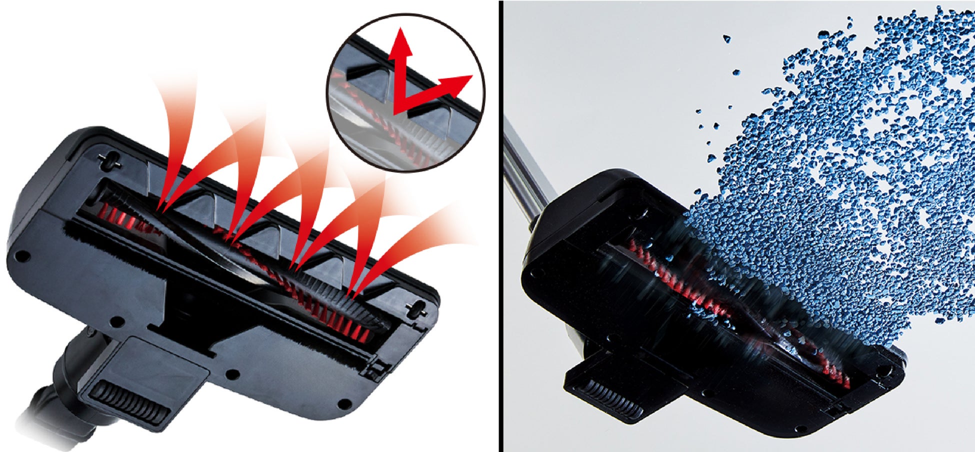 従来モデルにはなかった高速回転モーター搭載の回転ブラシ付き電動パワーヘッドは、フローリングはもちろん、カーペットの中に入り込んだゴミまでしっかりキャッチ。