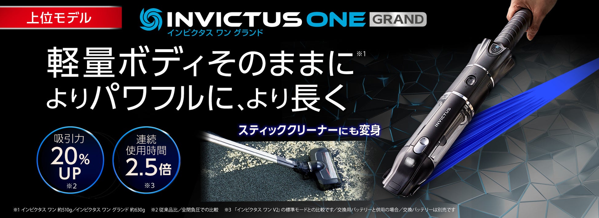 そしてこの度、スティック性能をアップした上位モデル『インビクタス ワン グランド』を全国の家電量販店にて販売を開始いたします。