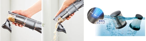 HEPAフィルター搭載で排気もクリーン。水洗いも可能でお手入れ簡単、いつでも清潔を保てます。ゴミ捨てもワンタッチ!