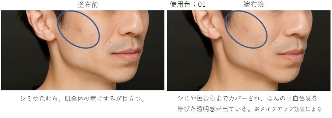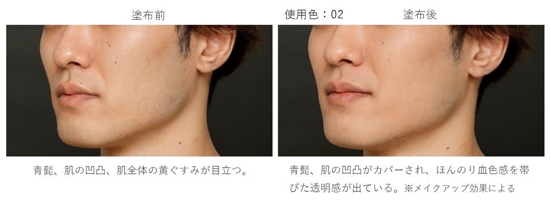 男性と女性の肌色の見え方の差の一要因である“血色素量”が男性の方が多く、男性の肌の方が赤みを帯びていることに着目。男性肌の魅力までカバーしないために、光の中の赤い光を利用して自然でばれない仕上がりを目指す考え方である“R-ライトフィルタリング理論”を採用いたしました。赤色光を選択的に透過し、仕上がりの肌に赤い光を纏う「レッドライトプロセッサー※2」を搭載することで、隠したい青髭やニキビ跡、クマやシミはしっかりとカバーしながら、男性ならではの血色感を損なわず、まるで素肌そのもののような極めて自然な仕上がりを実現。