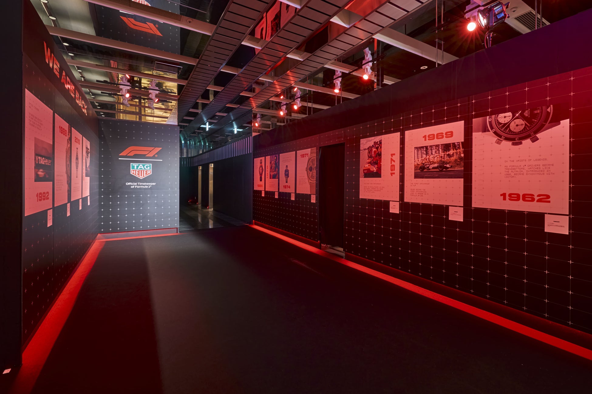 会場ではモーターレーシングの計時における輝かしい歴史を誇るタグ・ホイヤーと、1992年から続くブランドとF1のかけがえのない絆を象徴するヒストリーがゲストを迎え、22年ぶりとなるF1公式タイムキーパー復帰という華々しい新時代の幕開けを告げました。また、F1のエネルギッシュな世界から着想を得て、モーターレーシングのルーツとダイナミックなスピードと呼応するように情熱的な赤に彩られた空間には、 勝利のシンボルと謳われたゴールドの「ホイヤー カレラ」や伝説的なドライバー、アイルトン・セナも着用していたS/el コレクションといったタグ・ホイヤーが誇る貴重なアーカイブ、そして現在4度のドライバーズ・チャンピオンに輝くオラクル・レッドブル・レーシングのマックス・フェルスタッペンのレーシングスーツの他、週末に開催されるF1日本グランプリのトロフィーが展示されました。