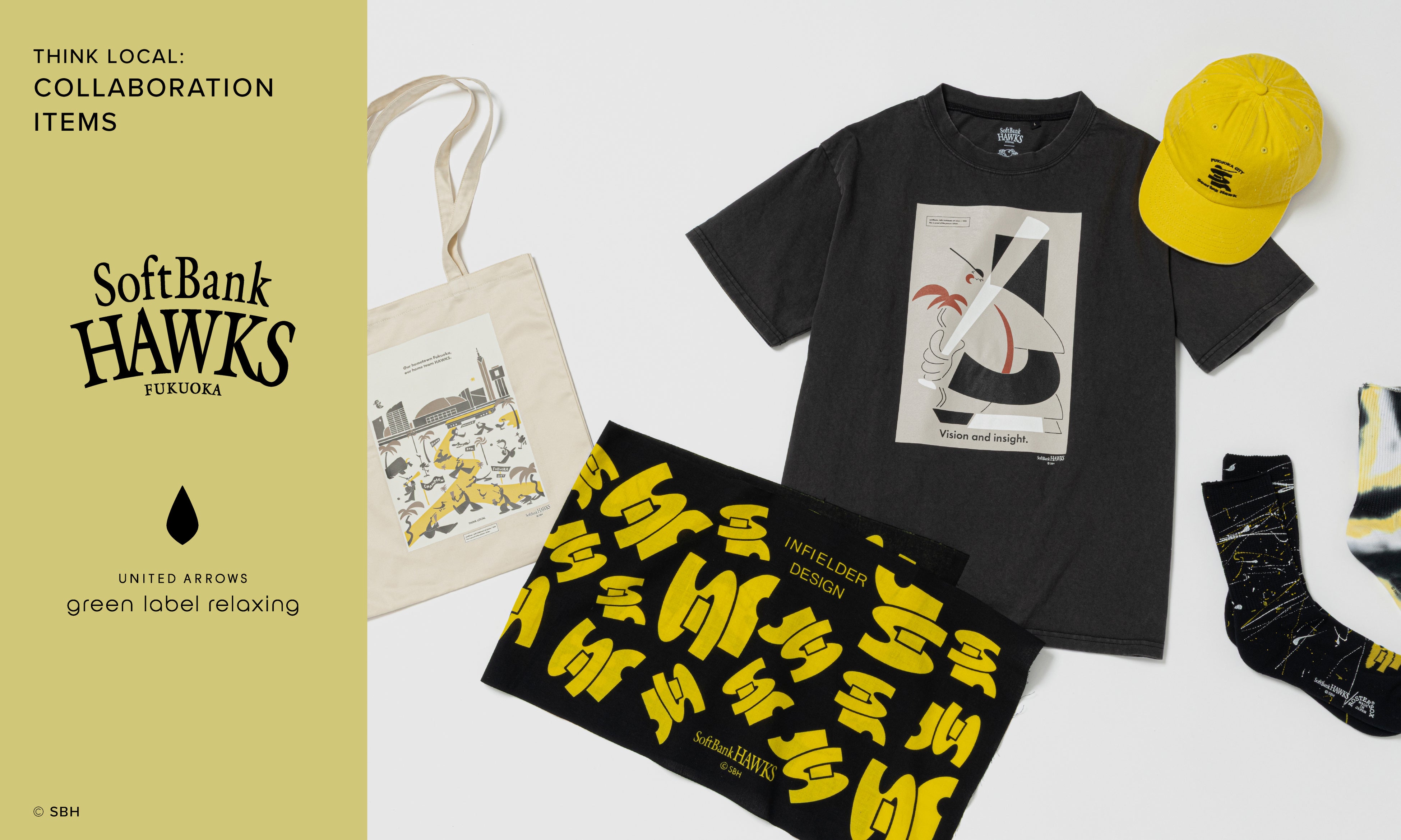 株式会社ユナイテッドアローズ(代表取締役 社長執行役員 CEO:松﨑 善則、本社所在地:東京都渋谷区)が展開する「ユナイテッドアローズ グリーンレーベル リラクシング(以下、グリーンレーベル)」は、プロ野球球団「福岡ソフトバンクホークス(以下、ホークス)」とのコラボレーションアイテムを、 2026年4月24日(金)に発売します。グリーンレーベルの地元応援プロジェクト「THINK LOCAL」の取り組みとして、福岡を拠点に活動するアーティスト・グラフィックデザイナーのtaiki kishimoto氏がホークスの象徴的なモチーフをもとにデザインしたTシャツ、キャップ、トートバッグ、ソックス、手ぬぐいを展開します。