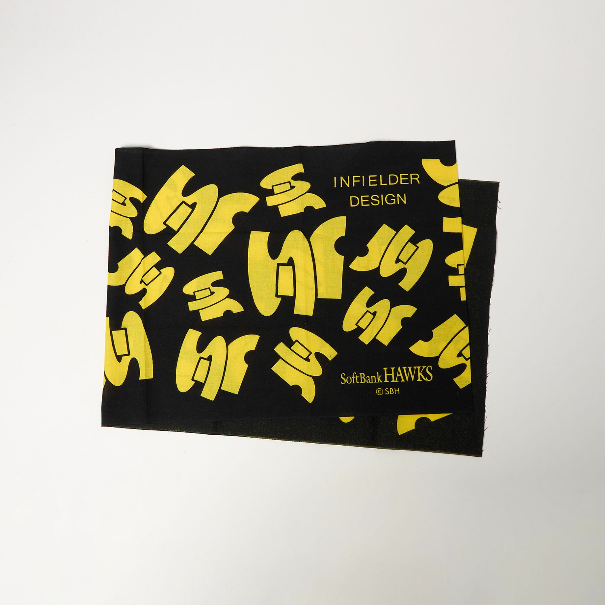 「INFIELDER DESIGN」の手ぬぐいをボディに、ホークスのロゴをモチーフにした総柄のグラフィックを施しました。応援シーンはもちろん、首元やバッグに巻くだけでスタイリングのアクセントにも。インテリアとして飾っても存在感のあるデザインです。