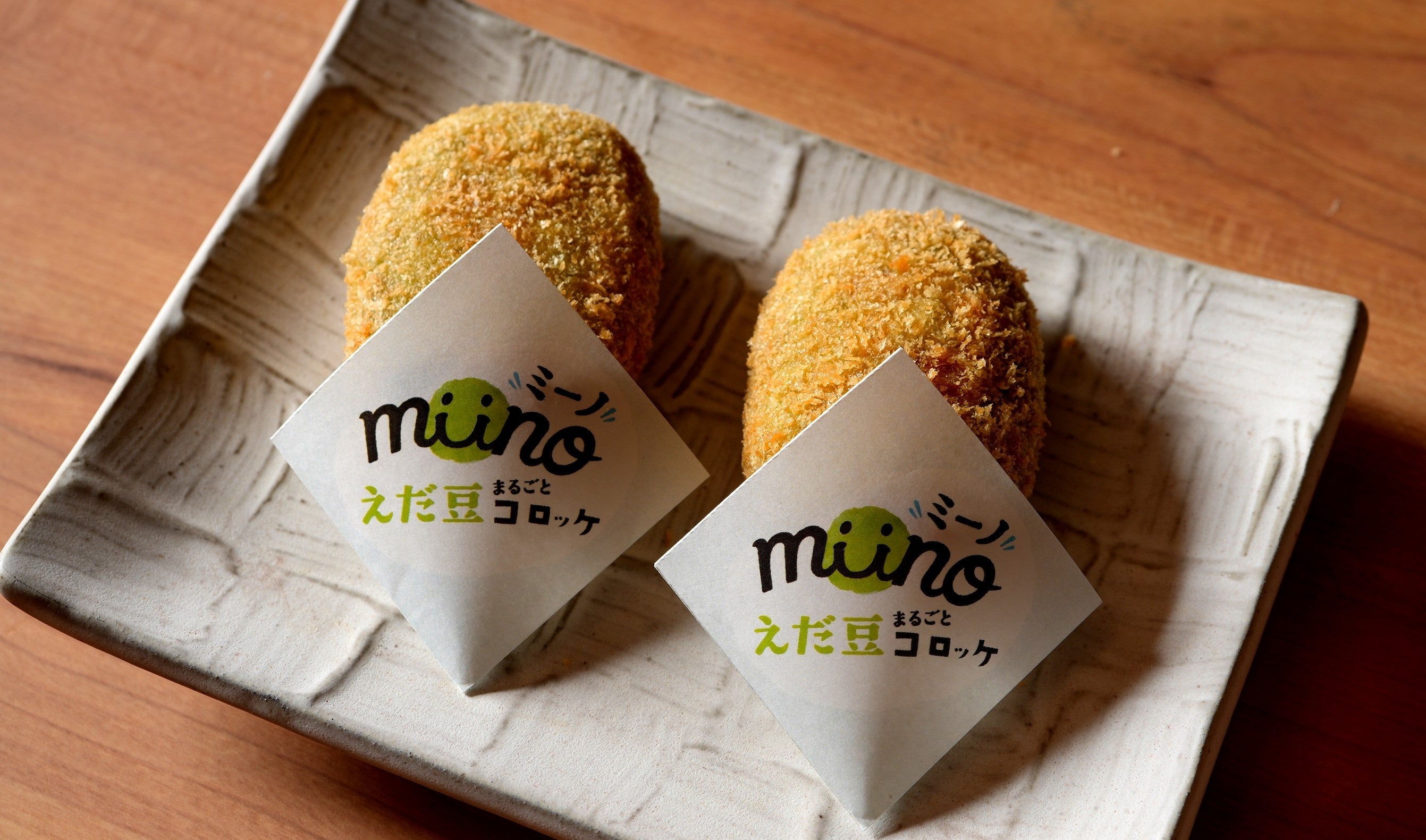 もともと“おつまみ”シーンに召し上がる方が多いというカルビーの「miino」を、本当に居酒屋のおつまみとして活用しました。そのまま食べておいしい商品を料理にするのはとても骨が折れる開発となりましたが、素材まるごとにこだわって作られた「miino」の味わいを生かし、えだ豆の香りがふわ~っと口に広がるコロッケに仕上げることができました。