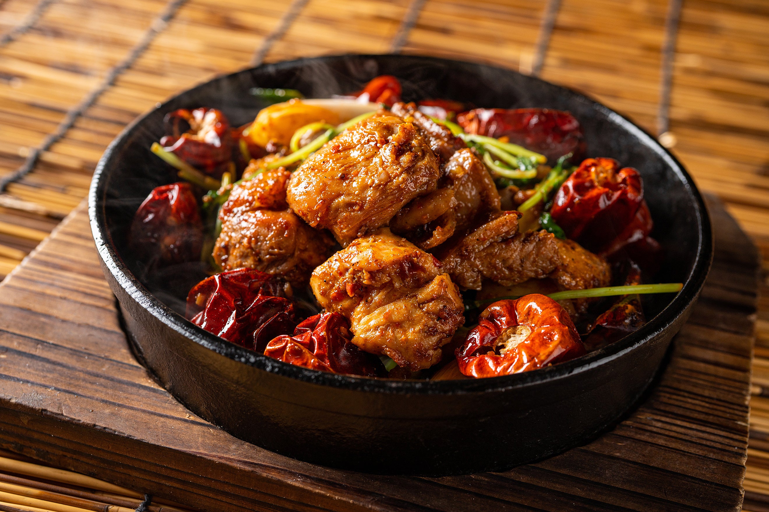 香り立つ四川系スパイスに、自家製ラー油と豆板醤の刺激的な辛さが食欲を増進させてくれる、この時期限定の炭火焼です。