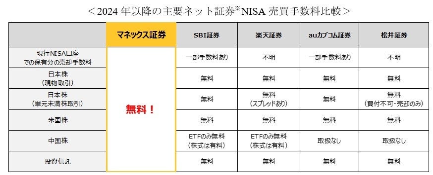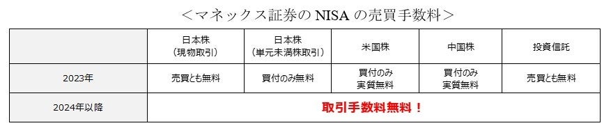2024年1月以降、5つの商品のNISAでの売買手数料を無料とします。