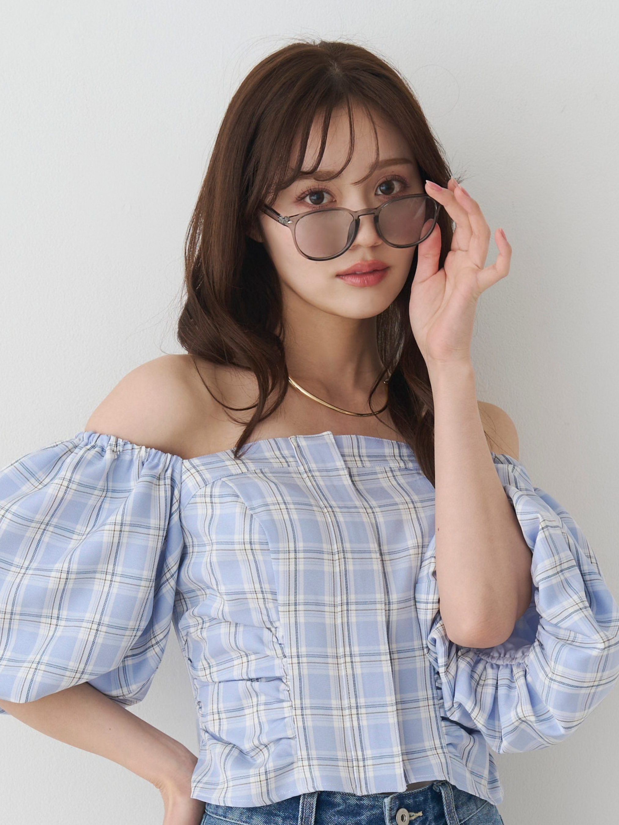 ぽってりとした丸みのあるフレームで、柔らかい印象のファッショングラス。