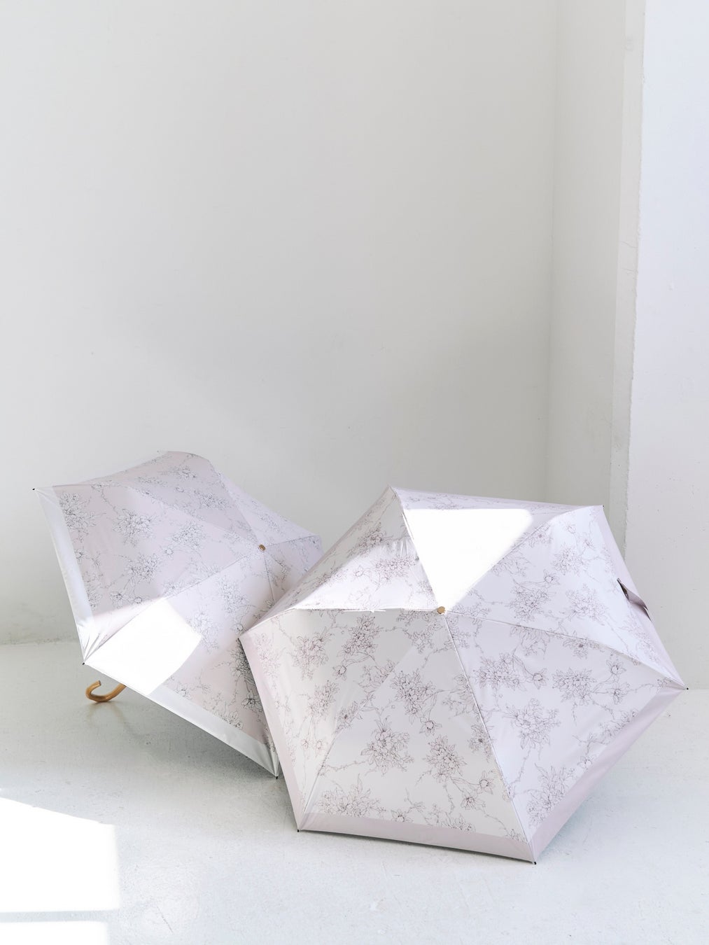 MERCURYDUOを象徴する繊細な花柄プリントが上品な、晴雨兼用の折り畳み傘。