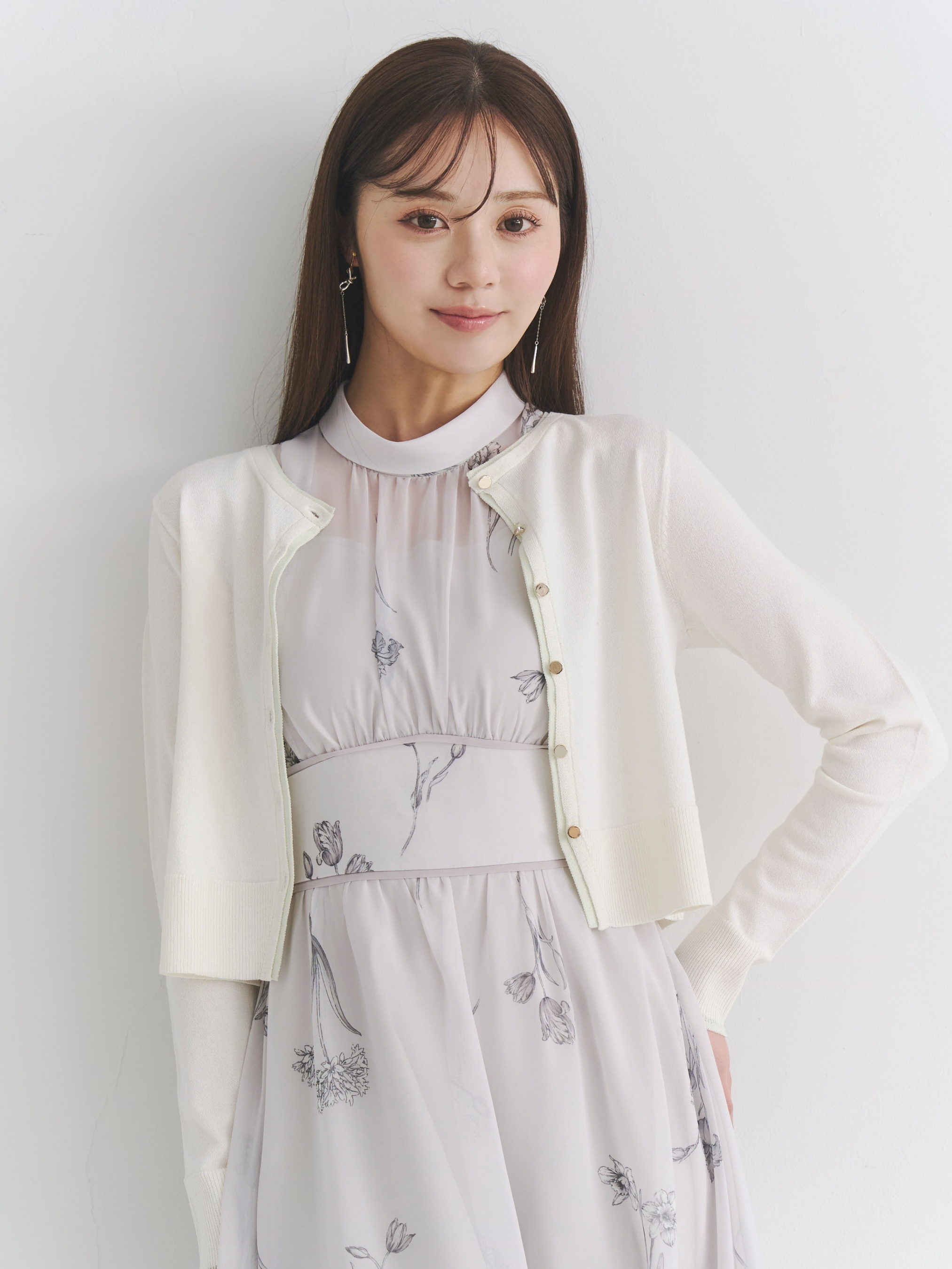 程よくフィットするシルエットと繊細なメタルボタン、さりげないレイヤードデザインが女性らしく上品な印象を演出します。