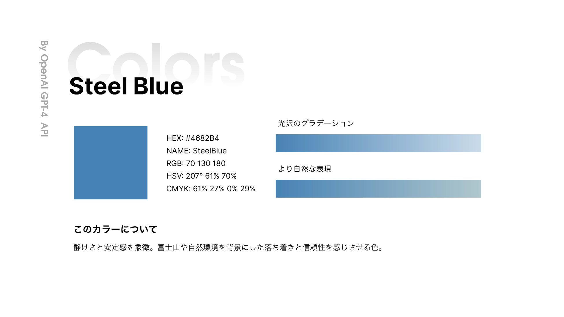 <AI解析して生成したキーワード、カラー、画像イメージの一例>