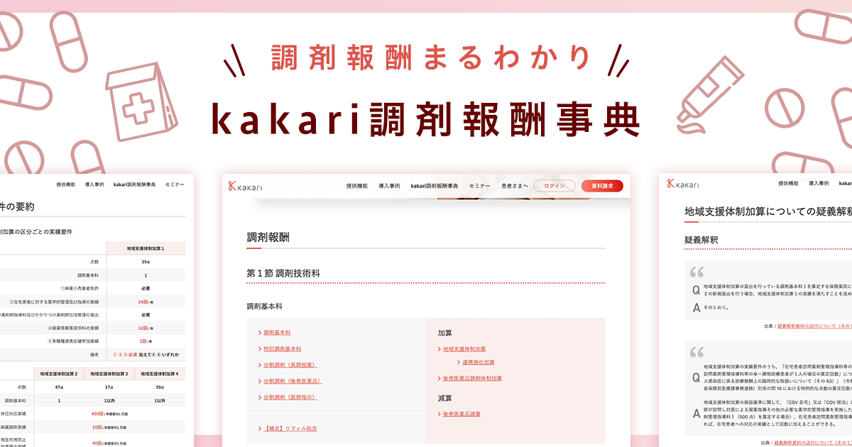 『kakari調剤報酬事典』を薬剤師監修のもと公開、薬局の会計に関わる“調剤報酬業務”をサポート