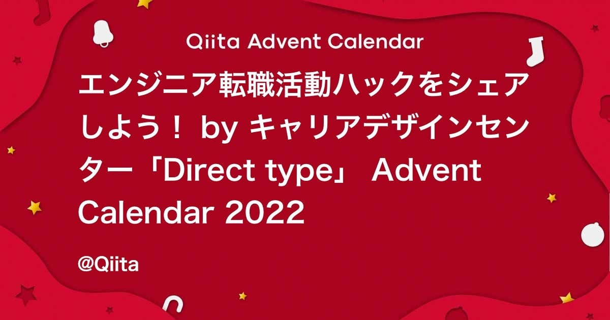 株式会社キャリアデザインセンター(以下 CDC、本社:東京都港区、代表取締役社長兼会長:多田弘實)が提供するITエンジニア向けスカウト転職サービス『Direct type(ダイレクト タイプ)』(https://directtype.jp)は、Qiita株式会社(本社:名古屋市中村区、代表取締役社長:柴田健介)が運営する、日本最大級(※)のエンジニアコミュニティ「Qiita(キータ)」が開催する「Qiita Advent Calendar 2022(キータ アドベントカレンダー 2022)」に協賛し、プレゼント受賞者を決定いたしました。