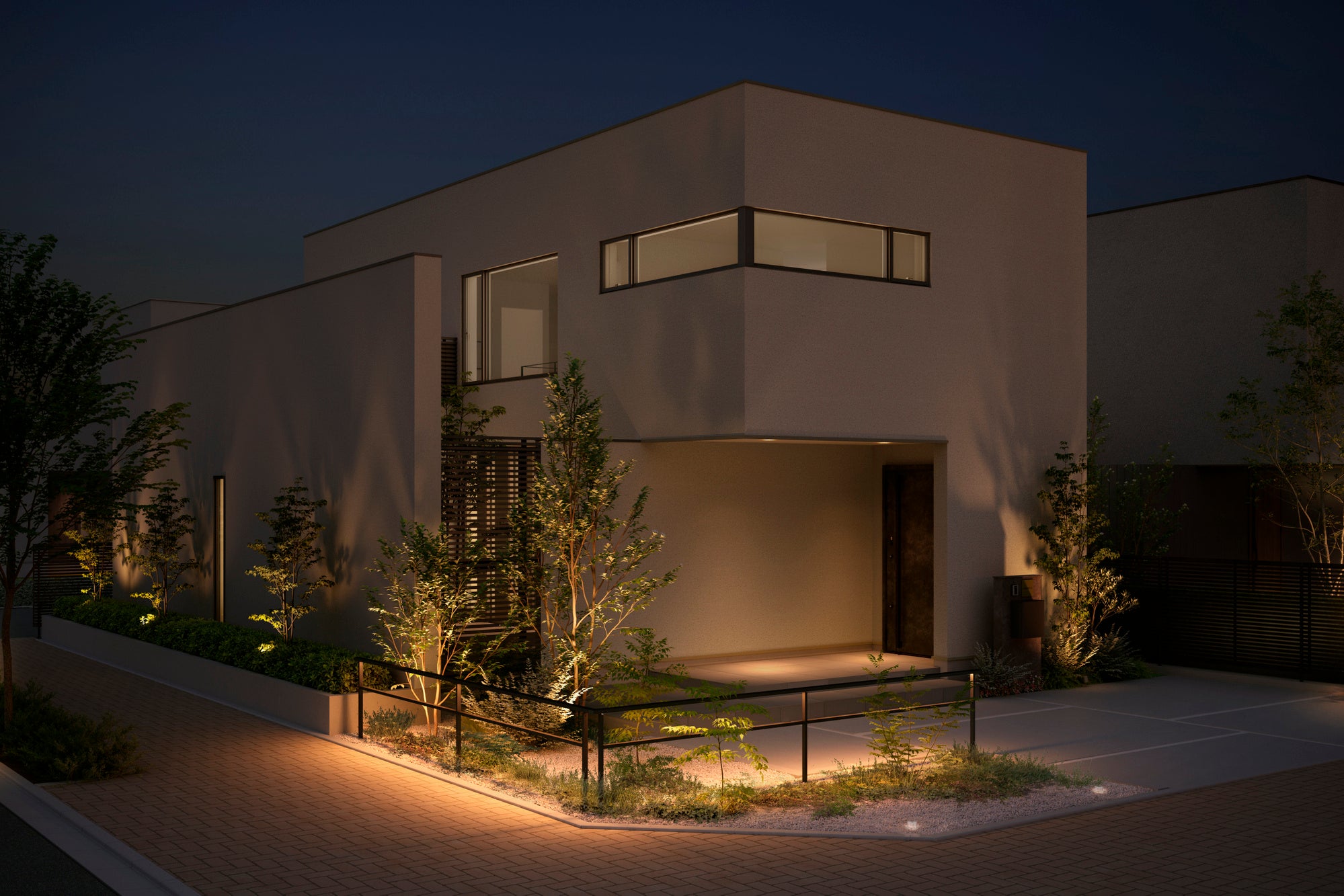 シンプルなフレームで構成されたフェンスA Lとの調和を叶えるシームレスラインライトを、オプションとして追加しました。光源を笠木に埋め込み、下から覗き込まないと光源の見えない仕様となっています。美彩と組み合わせれば光と影で彩られた幻想的なシーンが演出できます。