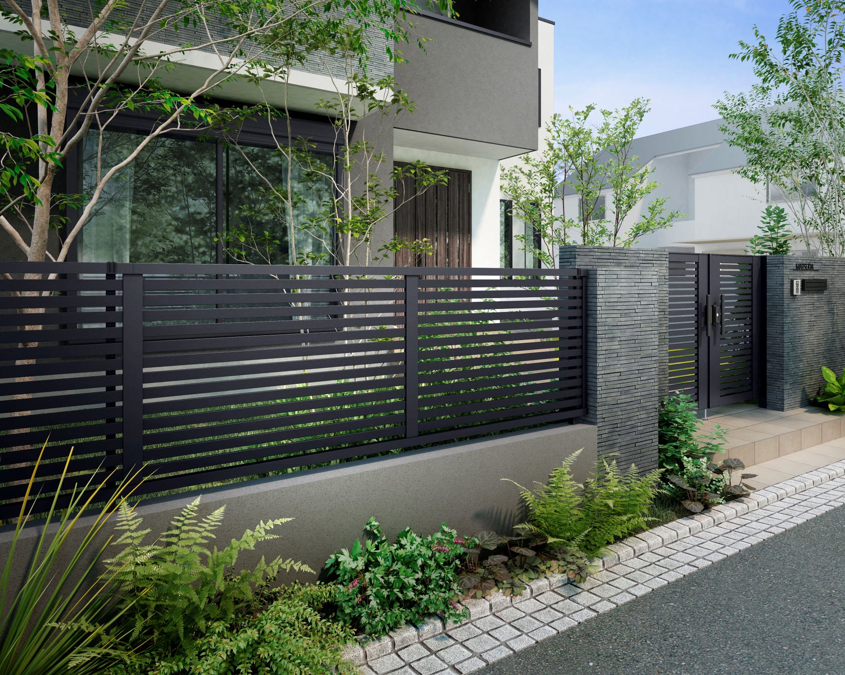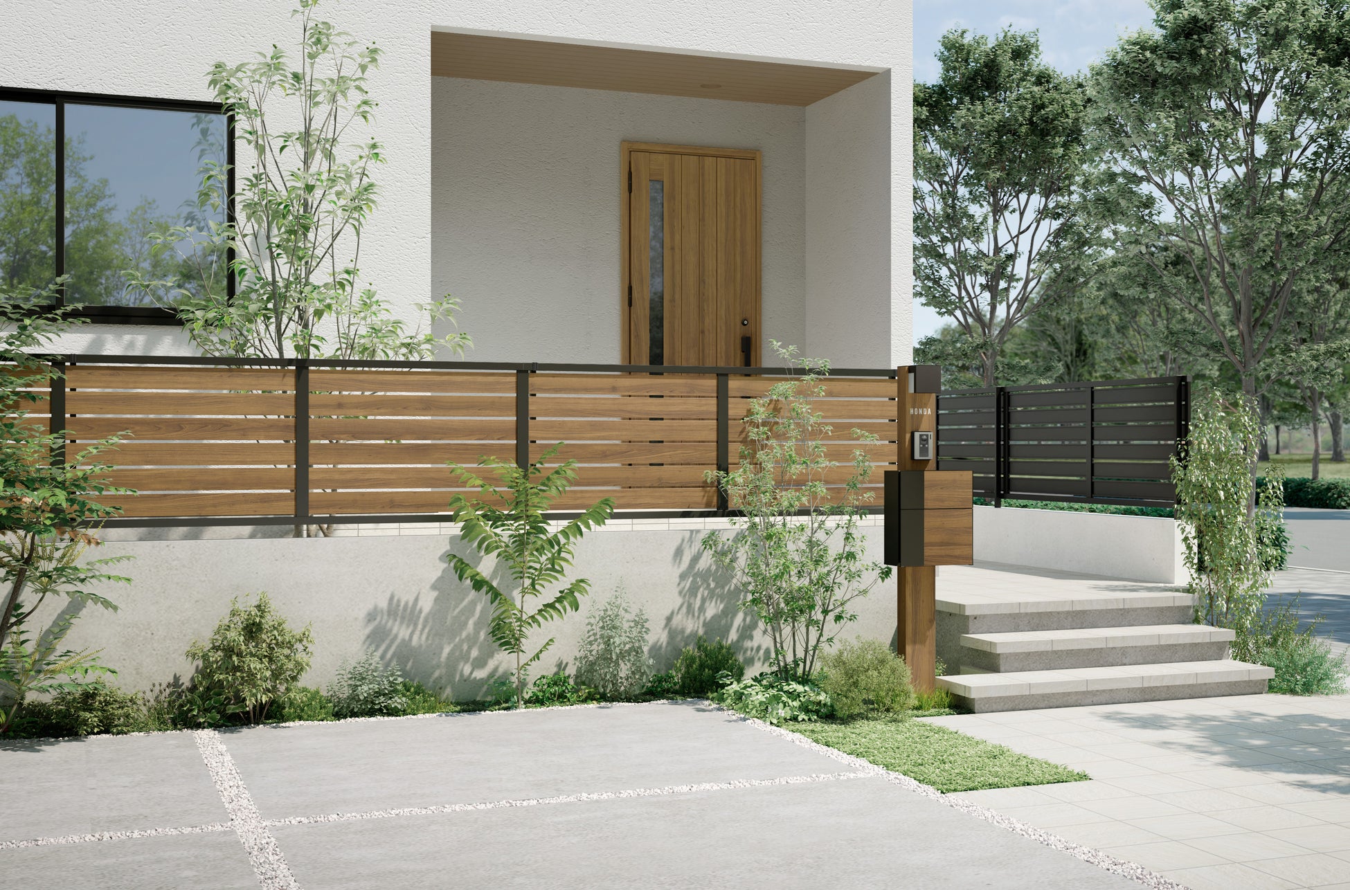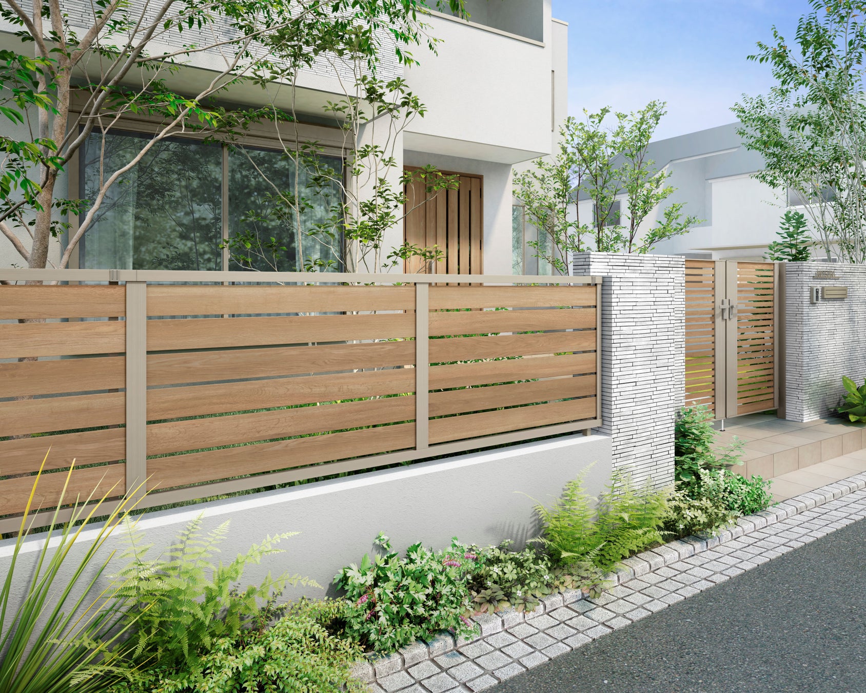 近年、外構に木調色を取り入れる住宅が増加傾向にあり、それに伴い木調色のフェンスが人気となっております。