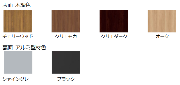 アルミ形材色2色と木調色4色の8パターンの組み合わせから、お好みに合わせてお選びいただける豊富なカラーラインアップです。※オーク色は6月5日より発売