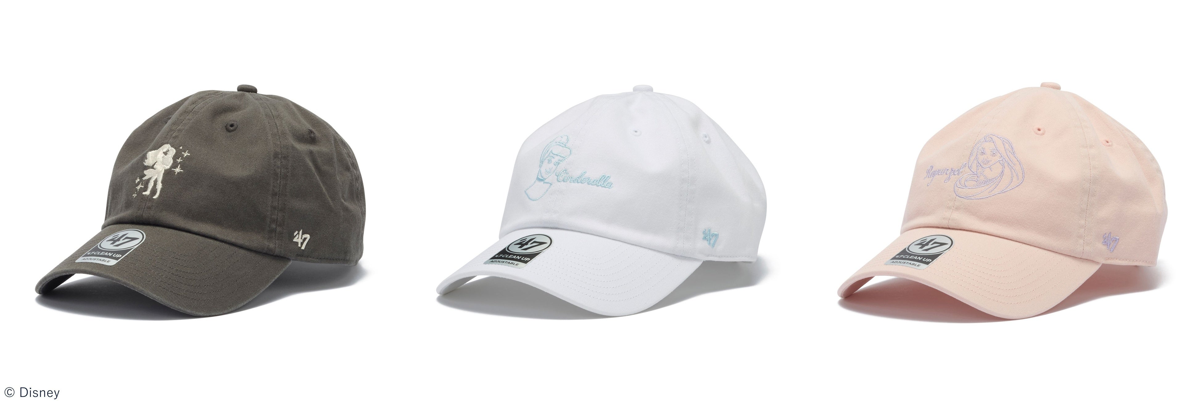 【’47(フォーティーセブン)】ディズニーデザインコレクションのラインアップに、4月発売のディズニープリンセス(アリエル、シンデレラ、ラプンツェル)キャップ6モデルが登場