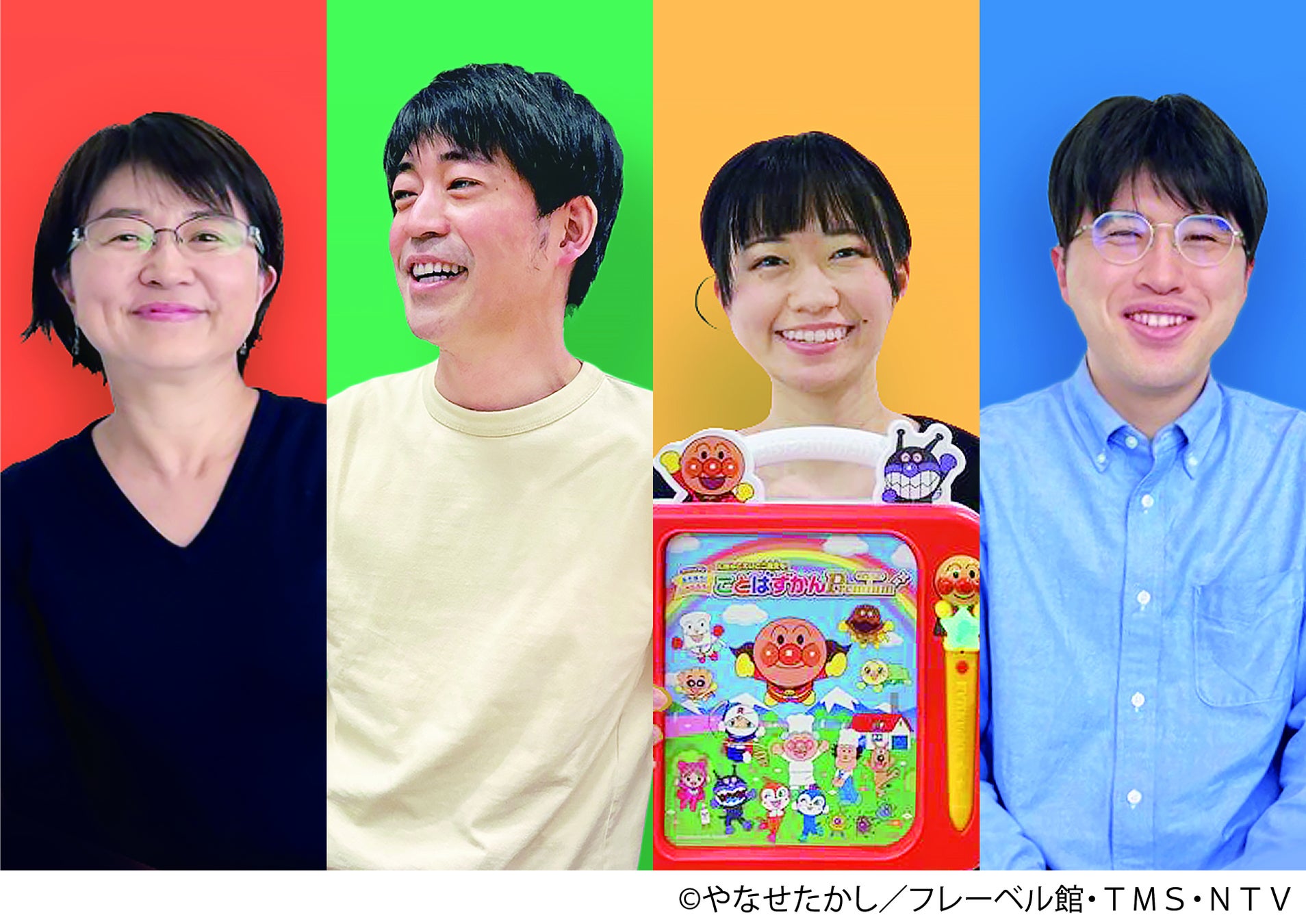 「アンパンマン ことばずかん」シリーズは、2010年に“あいうえお”の前に言葉を覚えてもらいたいという意見を参考にして、企画・開発をした商品です。小さなお子さまでも直観的に操作ができるタッチペンで絵本のイラストをタッチするだけでアンパンマンたちがその言葉を話してくれるため、遊びの中で自然と多くの“ことば”に触れることができます。