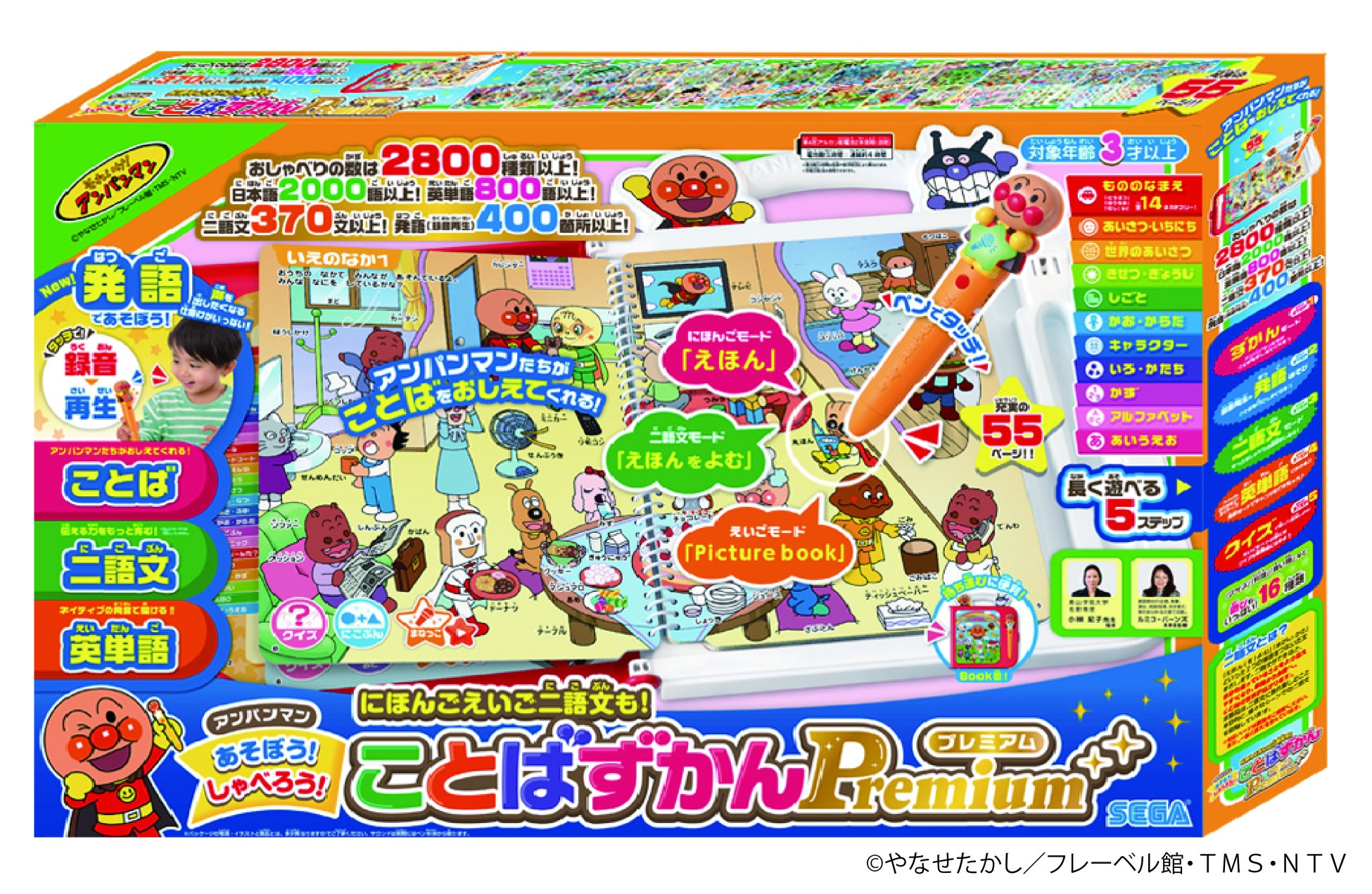 時代とともにシリーズも進化し、2021年に発売した4世代目の「アンパンマン にほんご えいご 二語文も!あそぼう! しゃべろう!ことばずかんPremium」では、日本語、英語、二語文合わせて2800種類以上の豊富な言葉が登場します。語彙力や表現力をしっかり育むことができるほか、「アンパンマン ことばずかん」には、“こころ”も育むためのさまざまな工夫を施しています。