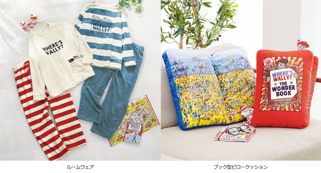「ウォーリー」のトレードマークであるボーダー柄を用いた、とろけるような柔らかさに包まれるルームウェアや、絵本をモチーフにしたブック型ピロークッション、「ウォーリー」とべるーにゃが仲良く並んだラウンドもっちりクッションの3型を展開しています。クッションに描かれたイラストには、「ウォーリー」とべるーにゃが隠れているので、ぜひ探してみてください。