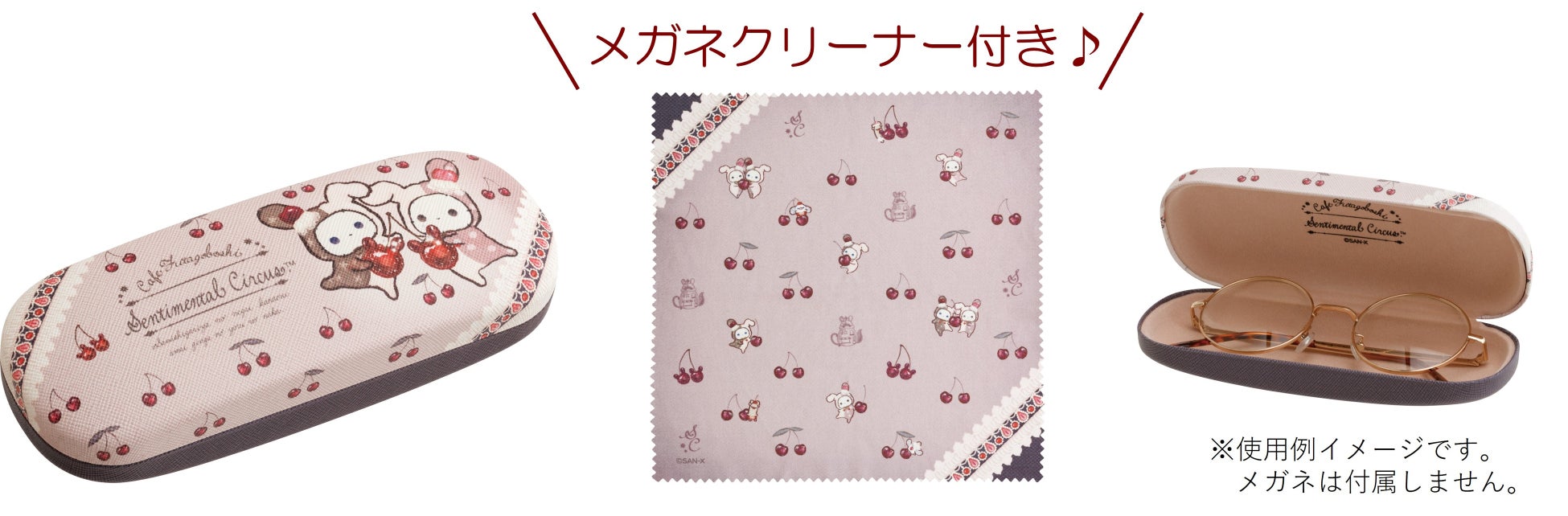 パカッと開閉できるメガネケースができました!チェリー柄のメガネクリーナー付き♪
