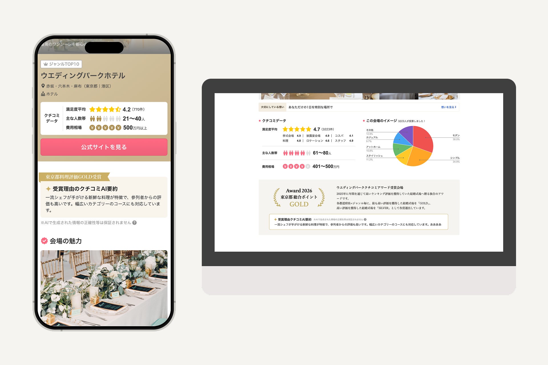 また、4月末にはWedding Parkに掲載されている一部の会場詳細ページに、Awardの受賞理由となるクチコミを生成AIで要約し表示する機能をリリース予定です。今後も、最新の技術を使用した機能改善やアップデートを定期的におこなってまいります。