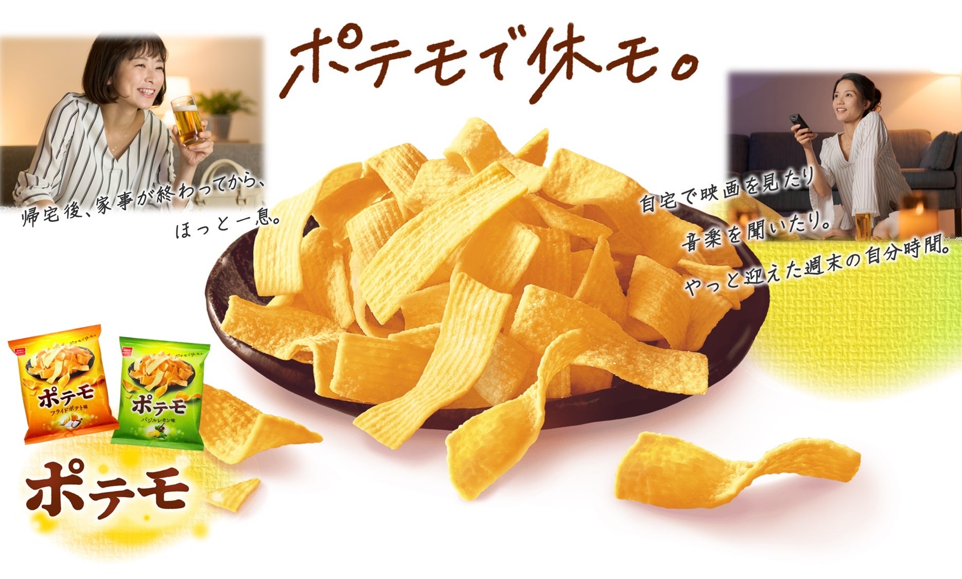 オトナ世代のリラックスタイムを特別なご褒美時間に変える。まったり時間にぴったりなポテトスナック菓子『ポテモ』 リニューアル発売&新フレーバー登場