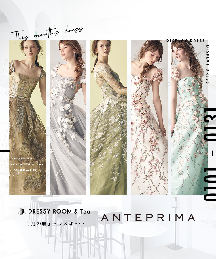 【DRESSY ROOM&Tea】1月新年初のディスプレイドレスはトレンド最先端!ANTEPRIMAのウェディングドレスを期間限定でお届けいたします。